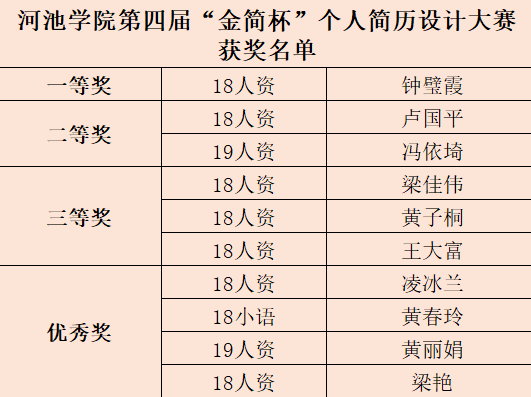2021年4月23日晚,由河池学院商学院主办,河池学院人力资源管理协会承办的以“简”从职场风云,“历”现才华人生”为主题的个人简历设计大赛决赛在弘毅楼2-202举行,我院人力资源管理系主任刘智,专任教师赵路以及王薇出席活动并担任评委。