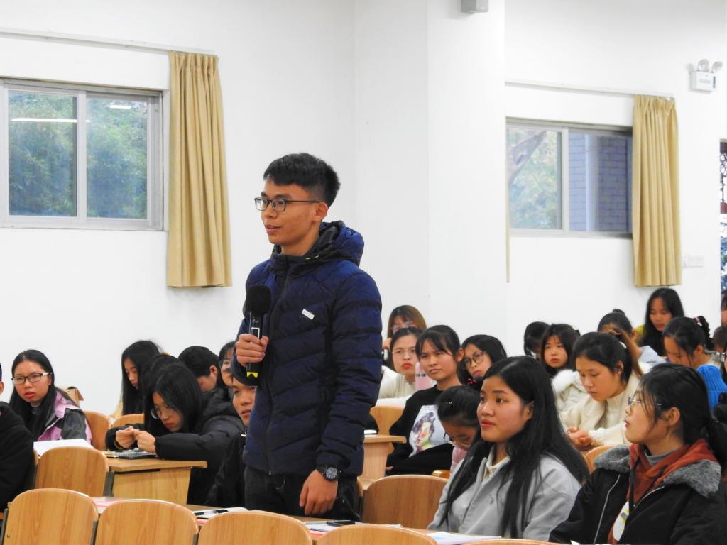 此次讲座,首先由我院党委书记韦书觉发言,韦书记详细介绍了尹朝安博士的成功经验并对他的到来表示热烈欢迎。接着尹朝安博士主要围绕“大学生职业生涯规划的国际化视野”这个主题展开论述。他先提出了开展本次专题讲座的目的,随后便以知名校友郎平和企业家马云为例,分析了当今社会部分成功人士所经历的磨练,还要懂得规划自己的人生目标,并朝这这个目标不断努力。尹博士还提到了网红李子柒为何如此受到广大群众的热爱为案例,认为这些都是靠自身的努力和社会提供的机遇,还有对电商的了解规划有关。尹博士还以自己的经历告诉同学们,虽然出生于小县城,没有过大的平台能够发展自己的能力,但是通过努力,一步一步的积累经验,规划自己的人生目标,逐步走向国际,向世界展示不一样的自己。