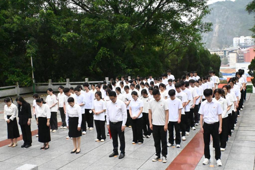 翠柏凝春,梨花风起。为深切缅怀革命先烈丰功伟绩,强化我院师生党员、团学干部及青马班学员的理想信念与责任担当,4月12日上午,我院组织约100名师生前往宜州烈士陵园,开展清明祭扫活动。